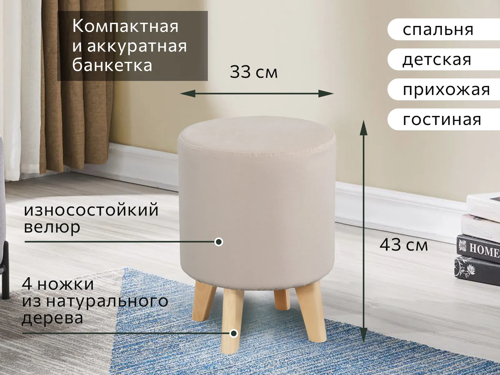 Ножки банкетки выполнены из натурального дерева, что придает ей прочность и устойчивость. Она может быть выполнена в различных цветах, что позволит выбрать наиболее подходящий вариант для вашего интерьера.
