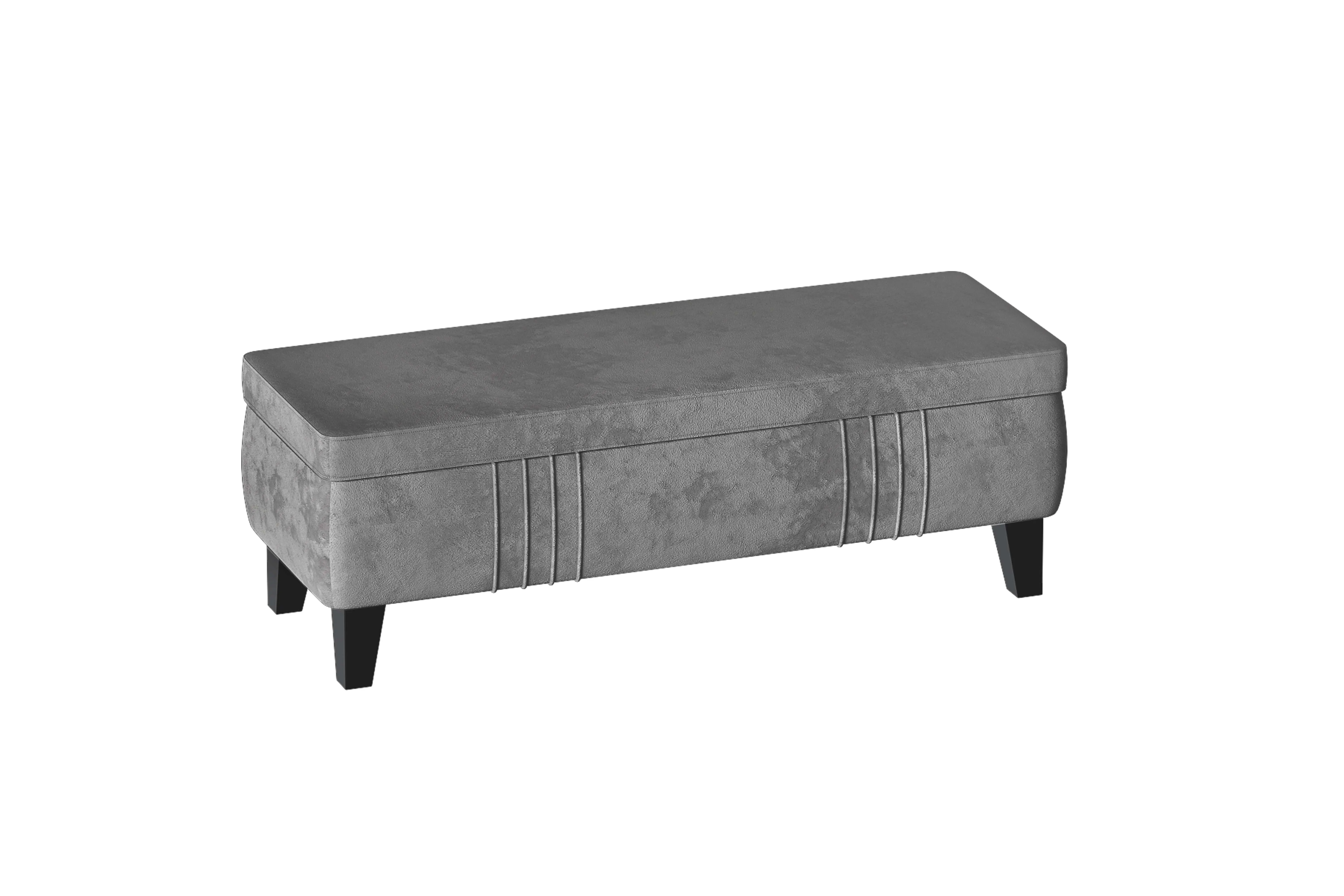 Декоративная отстрочка по высококачественному велюру добавляет приятный объем и украшает изделие. Опоры выполнены из массива берёзы, покрыты прозрачным лаком и имеют защитные войлочные наклейки. Банкетка хороша не только в спальне, но и в гостиной, на кухне и в детской комнате. Максимальная нагрузка 110 кг.