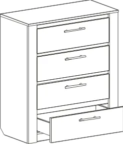 Комод оснащен четырьмя выдвижными ящиками на роликовых направляющих. Под столешницей имеется стеклянная панель (5 мм), предназначенная для установки светильника. Комплект подсветки (светильник и блок питания) приобретается отдельно. Блок питания рассчитан на подключение шести светильников.