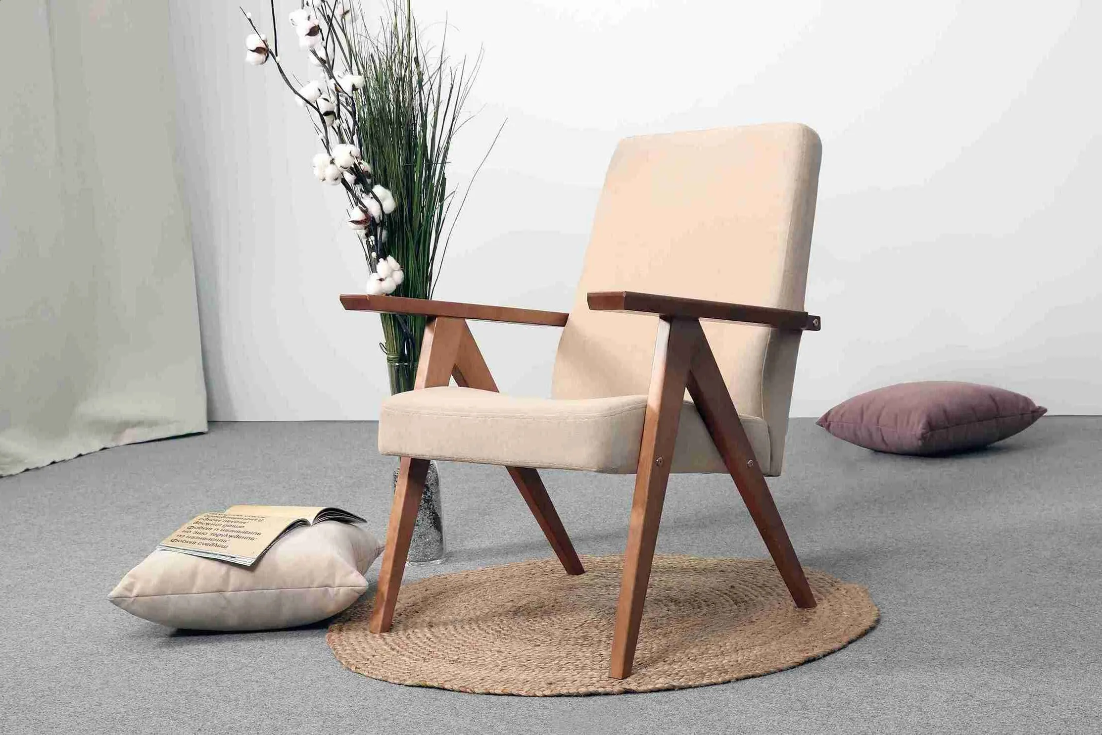 Кресло имеет простой и элегантный силуэт. Оно выполнено в уникальном ретро дизайне и доступно в нескольких цветовых вариантах, что позволяет выбрать наиболее подходящее для вашего дома.