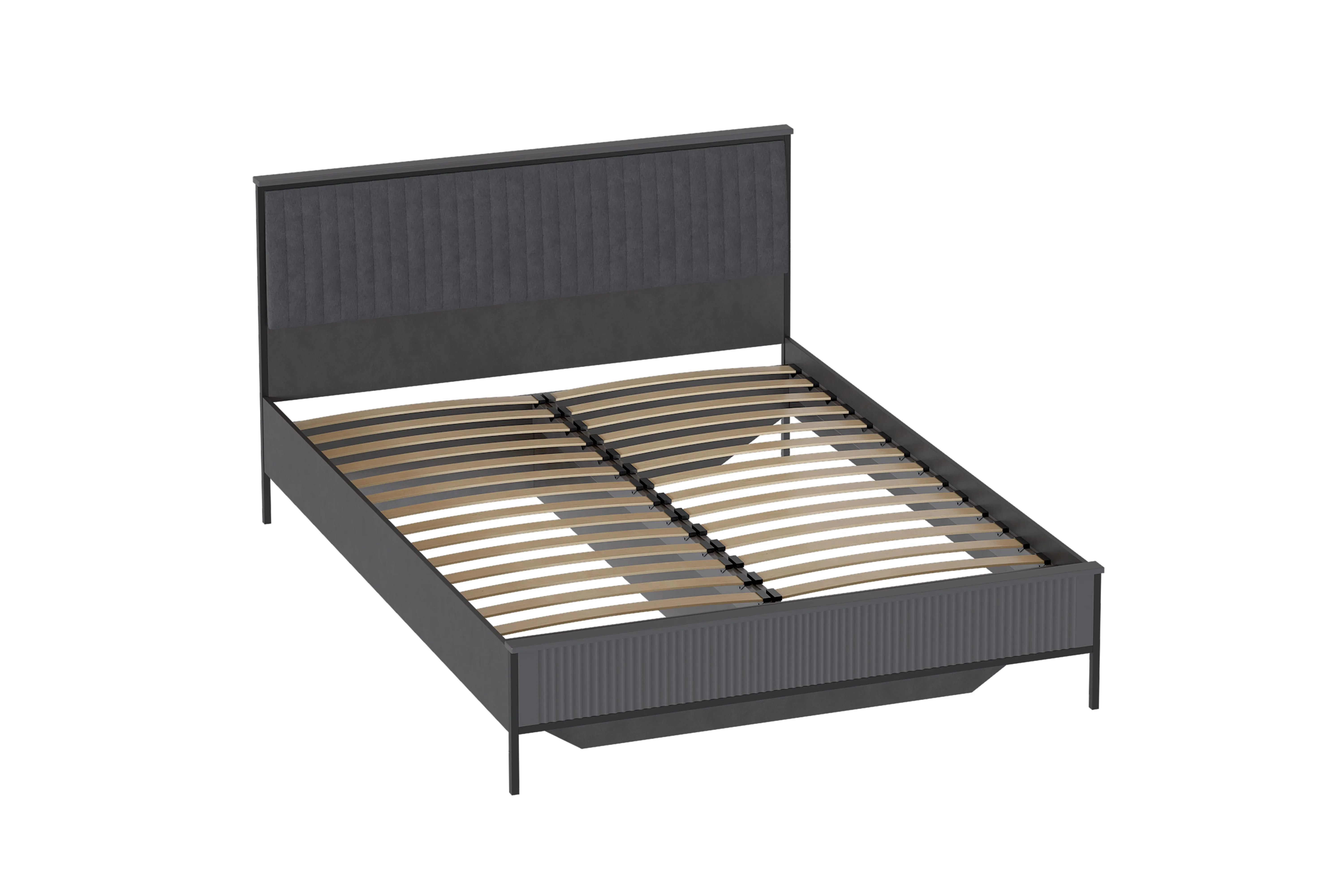 В изголовье кровати в цвете Металл Бруклин / Графит присутствует мягкий элемент, изготовленный из высококачественного велюра Velutto и ППУ. Изголовье кровати в цвете Персидский жемчуг / Персидский жемчуг выполнено из МДФ и декорировано фрезеровкой. Матрасное основание из деревянных ламелей встроено в конструкцию кровати.