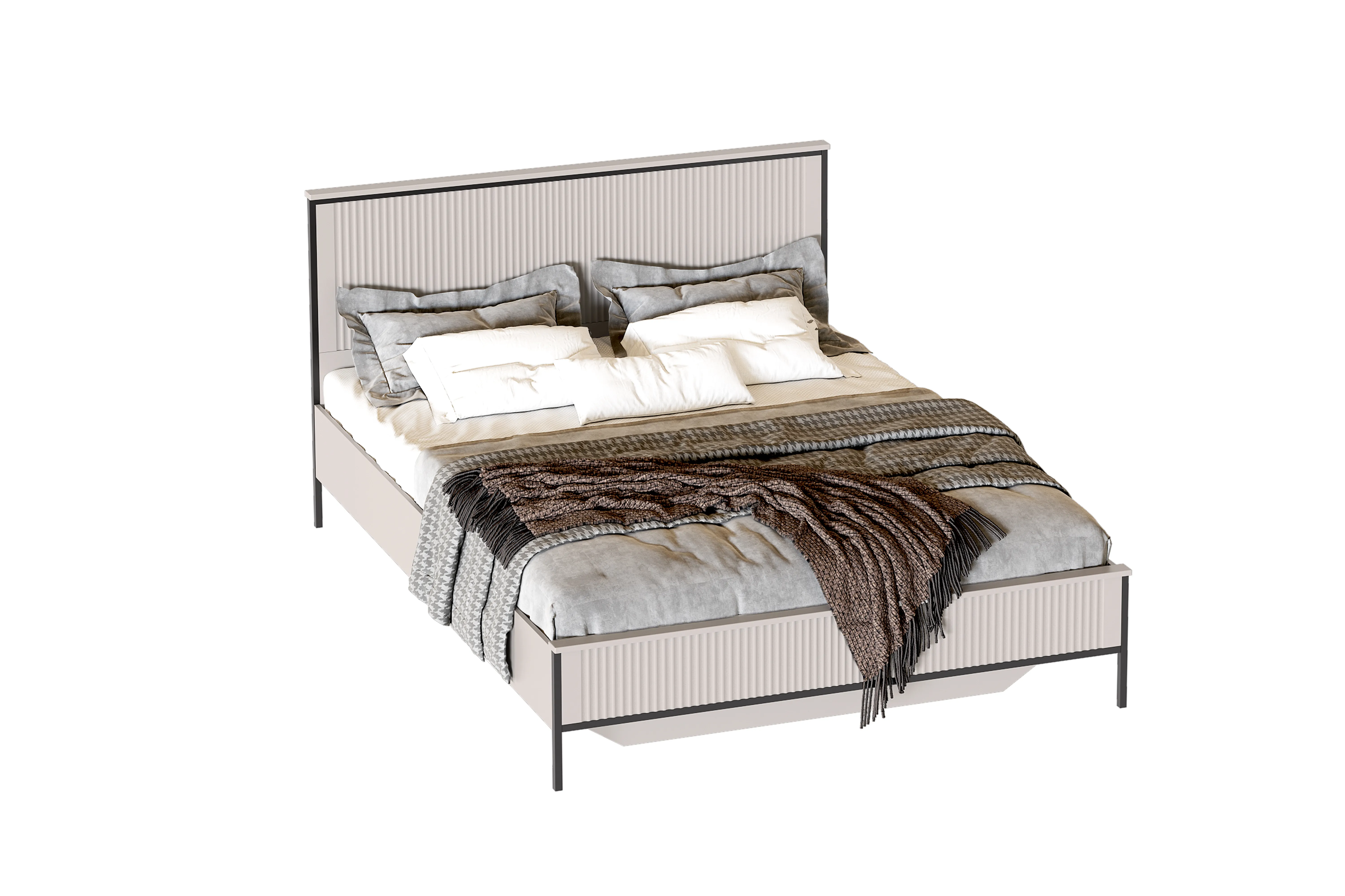 Кровать выполнена в двух вариантах исполнения: Металл Бруклин / Графит и Персидский жемчуг / Персидский жемчуг.