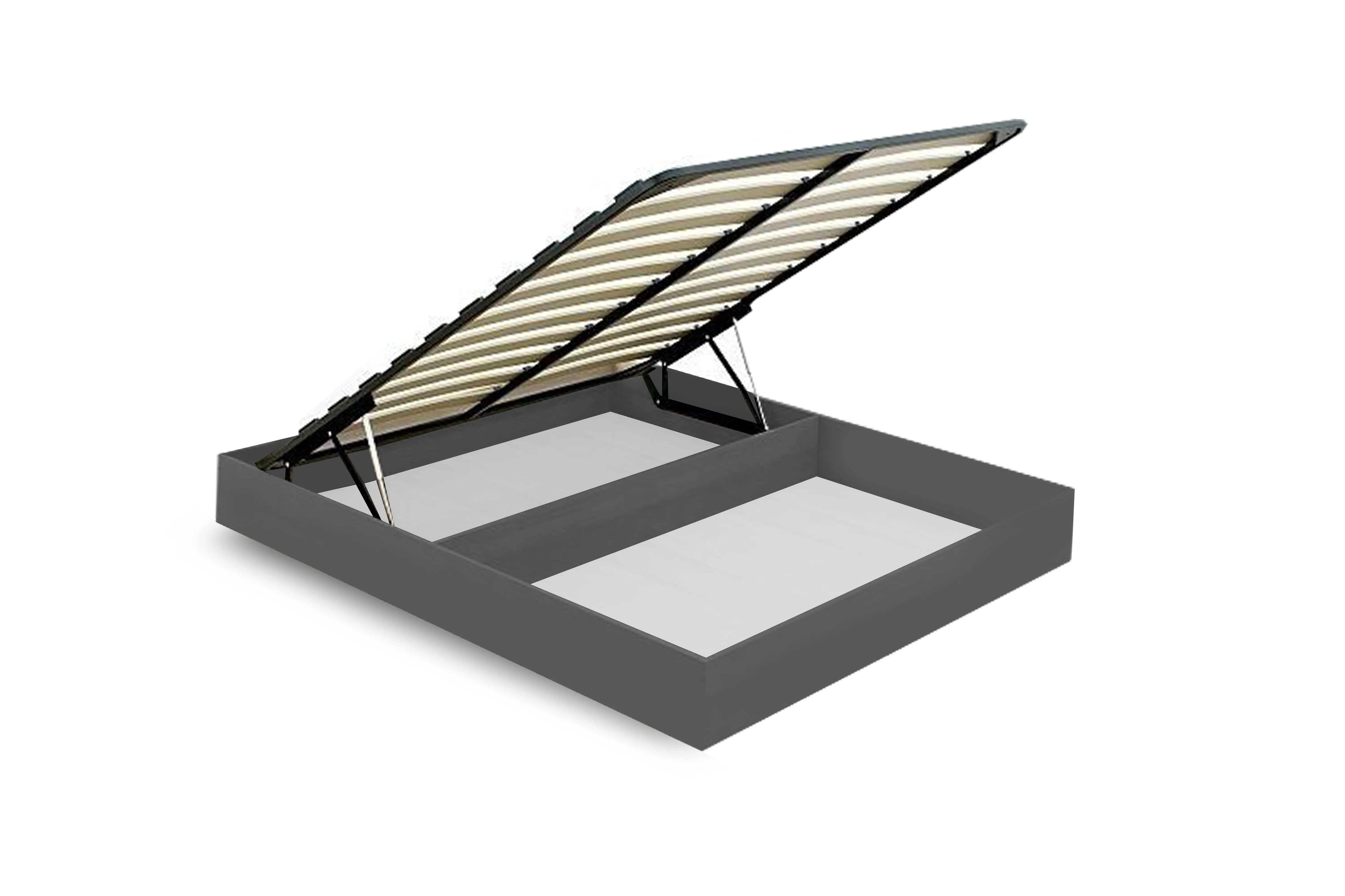 При помощи механизма ортопедическое основание поднимается вверх под углом, открывая доступ к пространству под кроватью для хранения различных вещей.