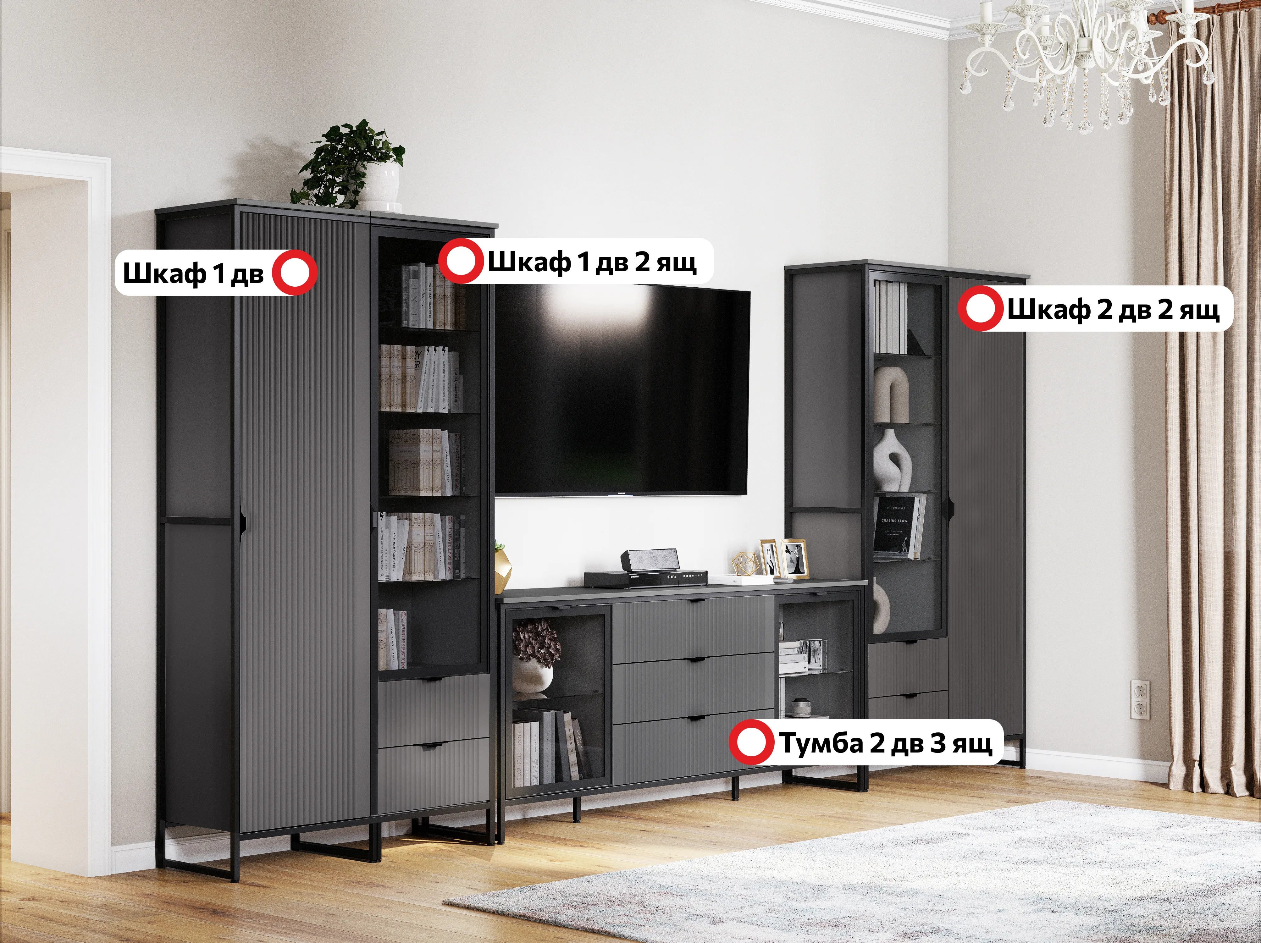 Тумба 2 дв 2 ящ "Нора" гостиная Графит Тумба 2 дв 2 ящ "Нора" гостиная Графит