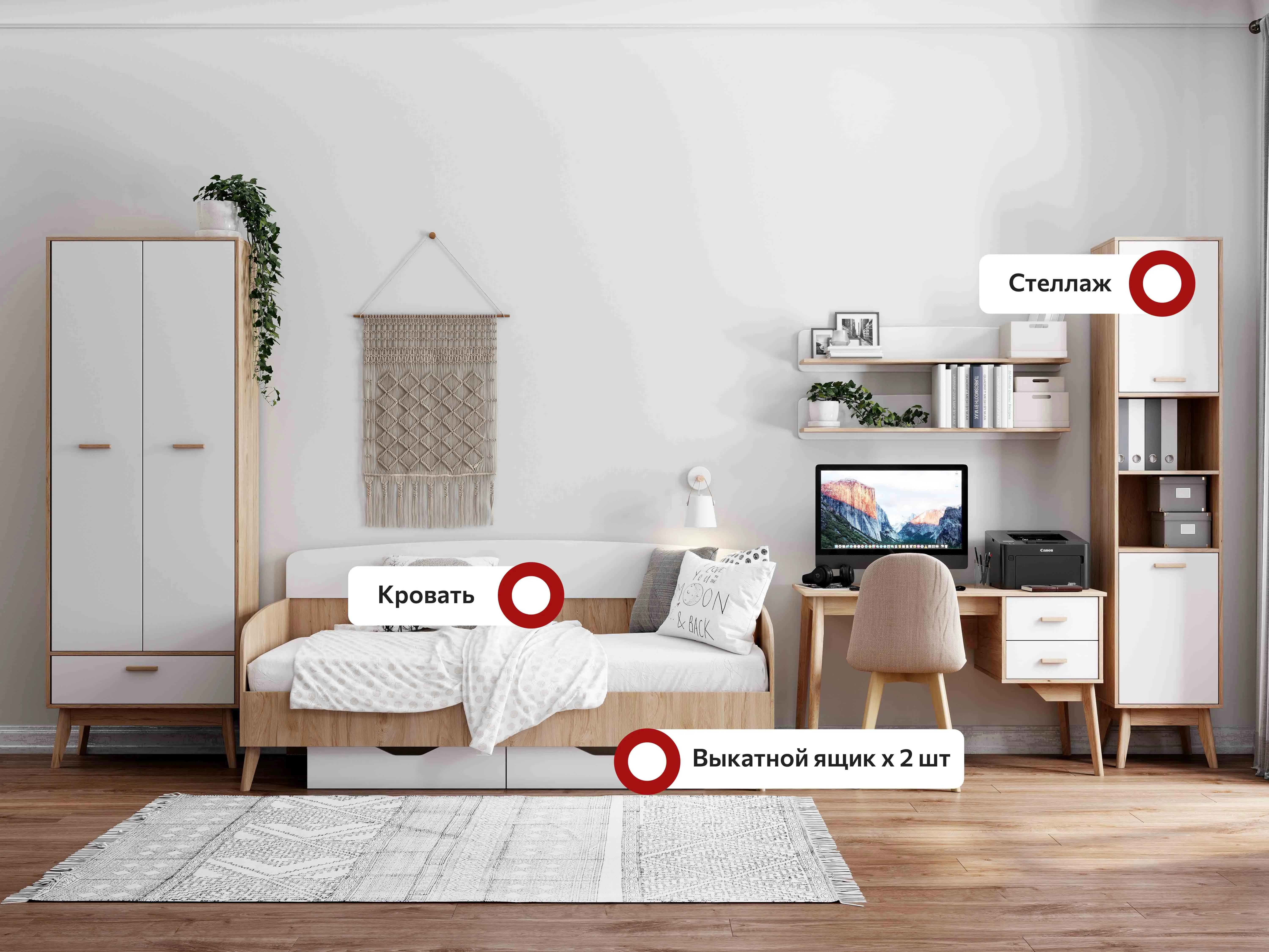 Она включает в себя различные элементы: шкаф, стол, стеллаж и кровать, которые можно комбинировать в зависимости от потребностей и предпочтений.