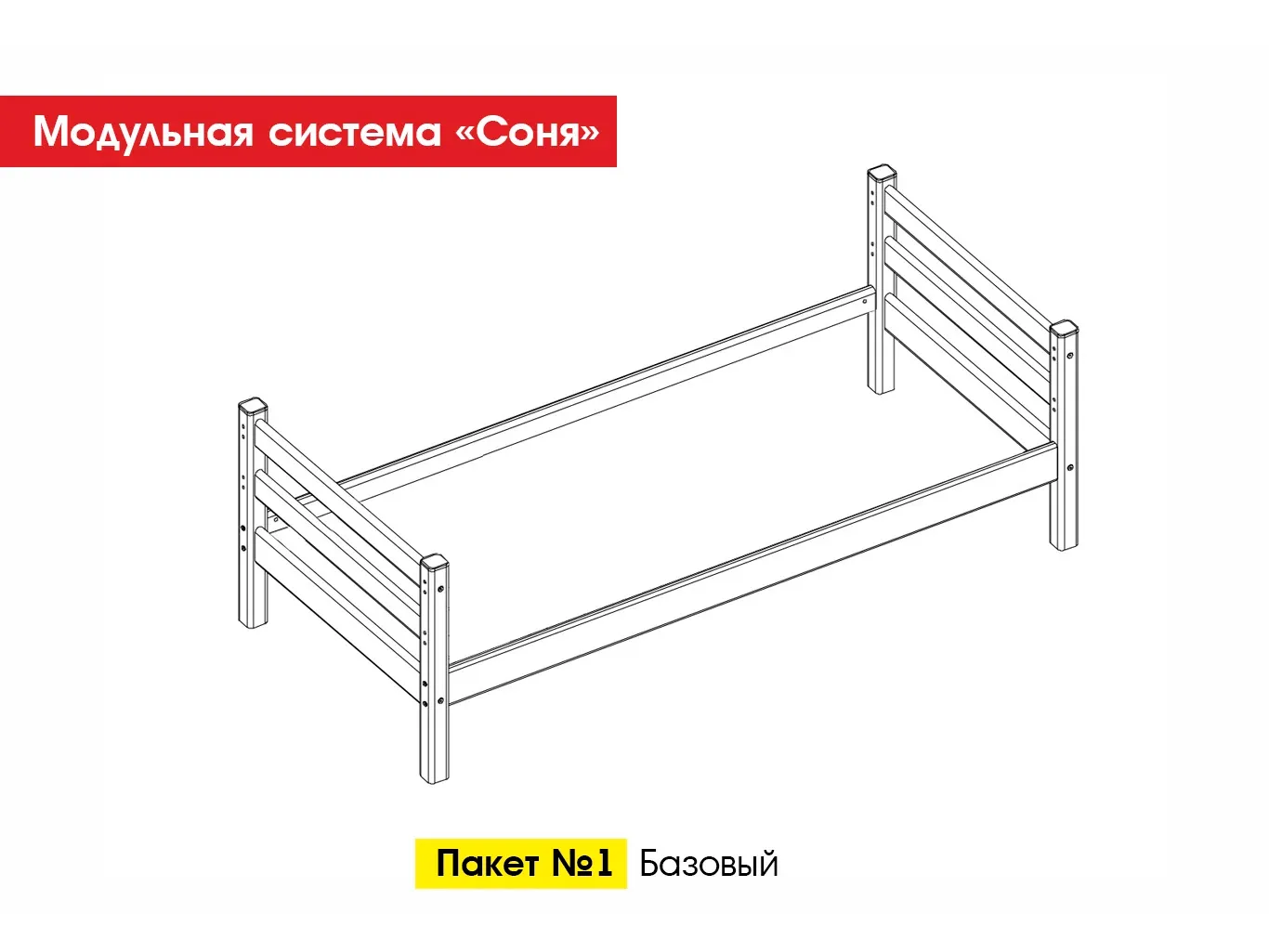 Пакет №1. Базовый представляет собой каркас кровати модульной системы “Соня”.