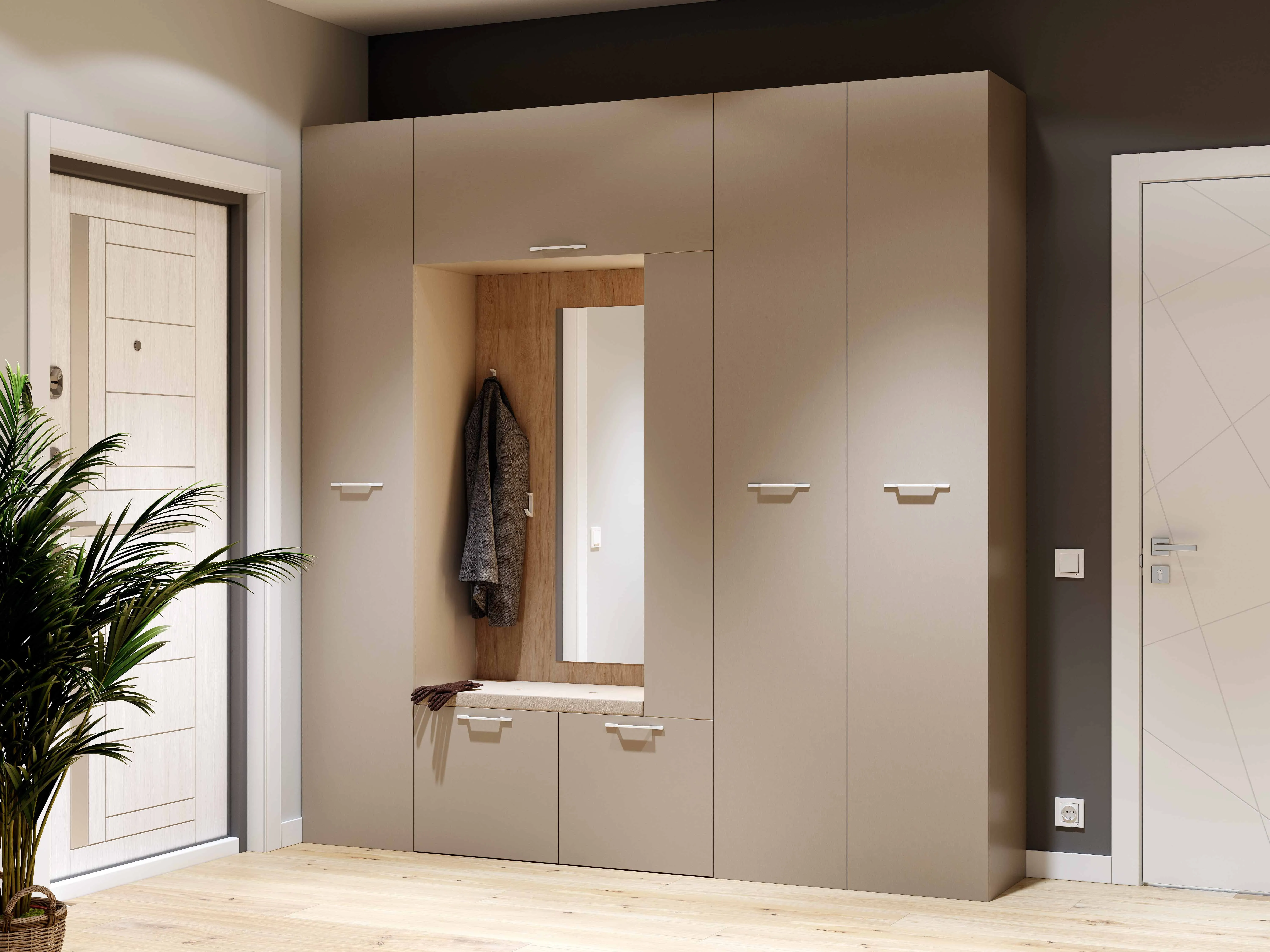 “Джерси” выполнена в красивом теплом оттенке капучино, который придает ей особую элегантность и изысканность. Этот цвет отлично сочетается с другими оттенками в интерьере, делая прихожую универсальным элементом декора.