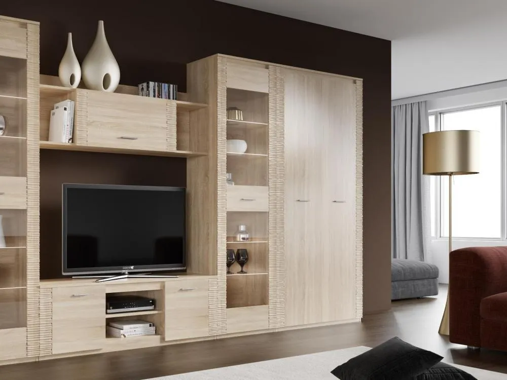 Отличительная черта серии "Элана" - вертикальные рифленые накладки на фасаде шкафа.