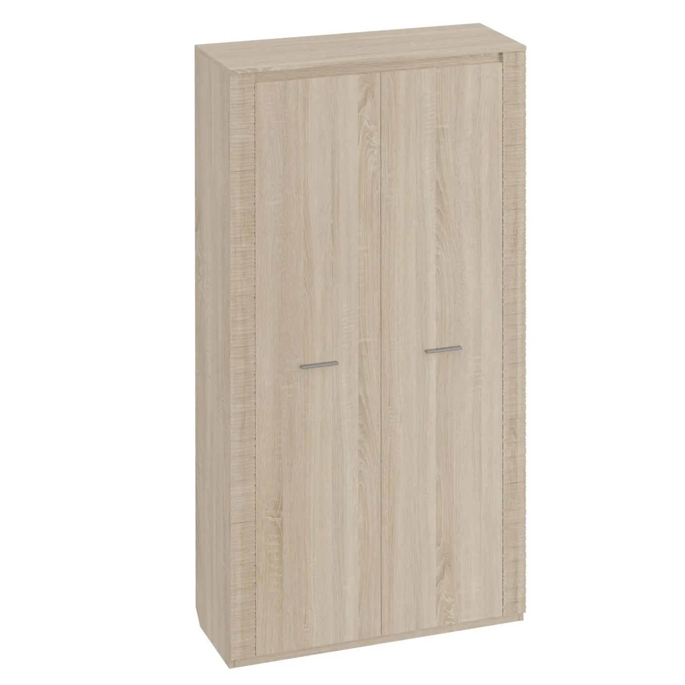 Двухдверный шкаф "Элана" с распашными дверцами имеет два отделения: отделение для белья с четырьмя съёмными и центральной стационарной полкой; платяное отделение со стационарной полкой и выдвижной стальной штангой.