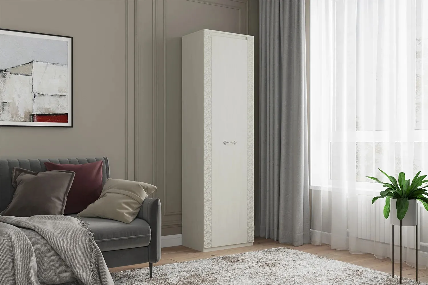 Отличительная черта серии "Элана" - вертикальные рифленые накладки на фасаде шкафа.