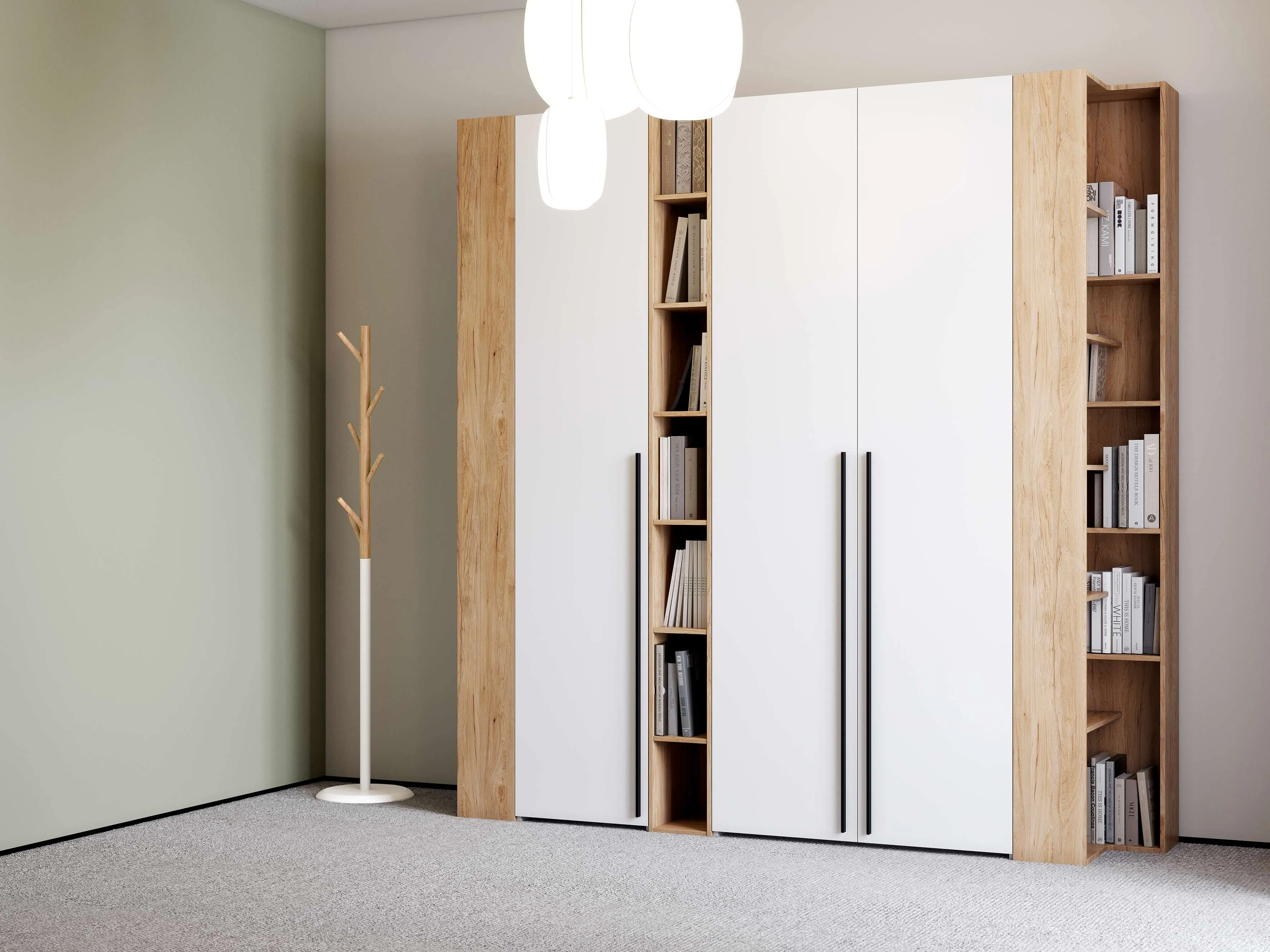 При заказе нескольких модулей шкафной группы, в том числе и стеллажей в комплекте присутствует фурнитура для стягивания модулей между собой (межсекционные стяжки).