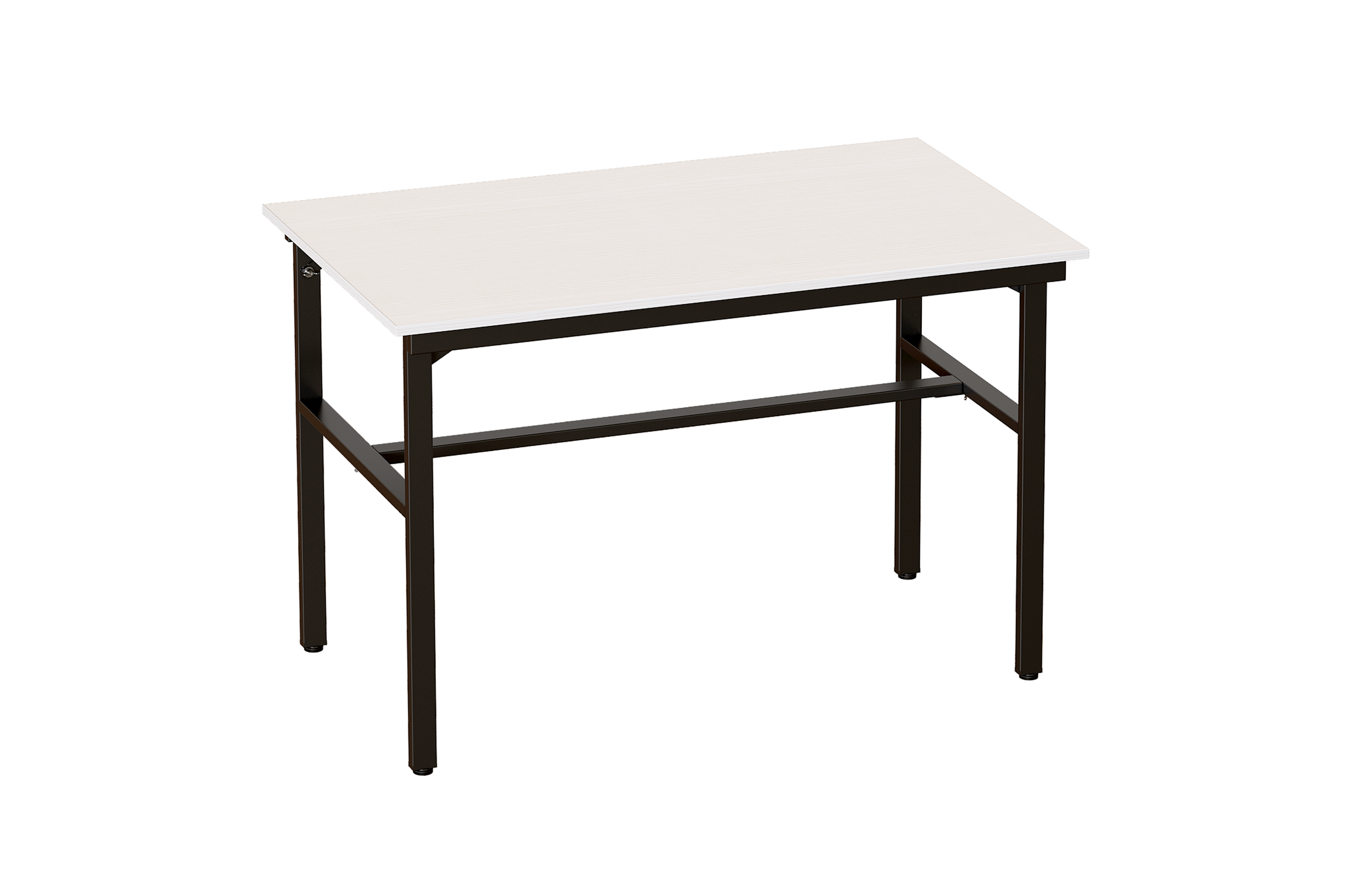 Раскладной стол "Брион 1" с прямоугольной столешницей.  Опорами служат две раскладных металлические рамы, соединённые между собой сборной / разборной поперечиной. Рамы фиксируются крючками и затягиваются  несъёмными винтами ("барашек"). Высота стола регулируется.