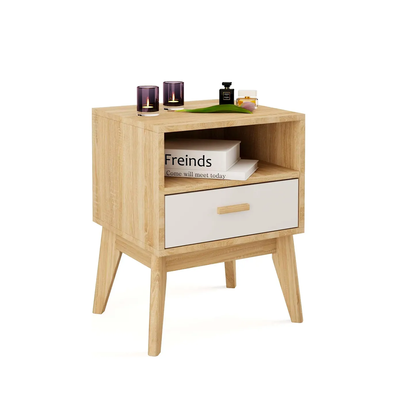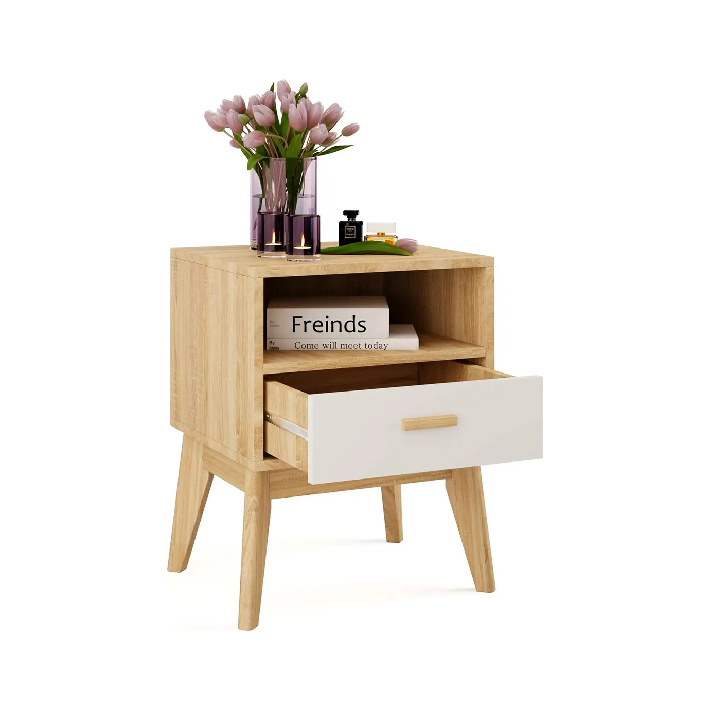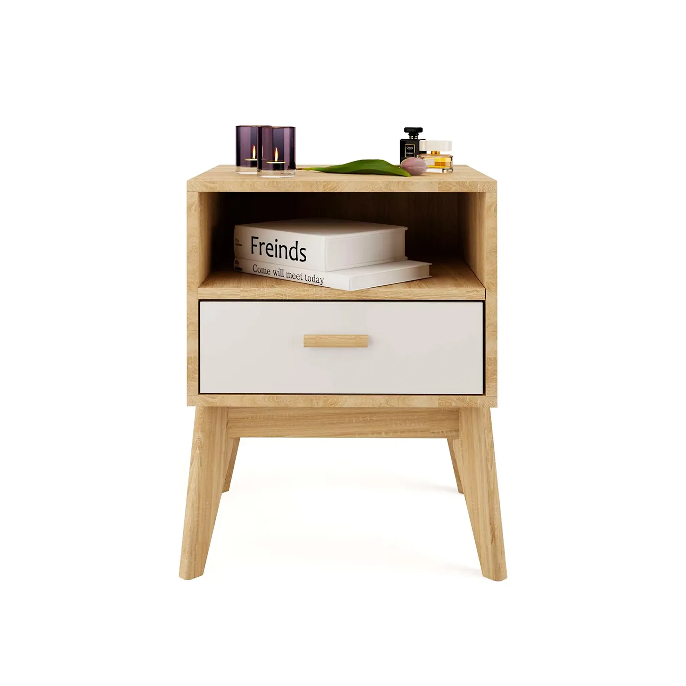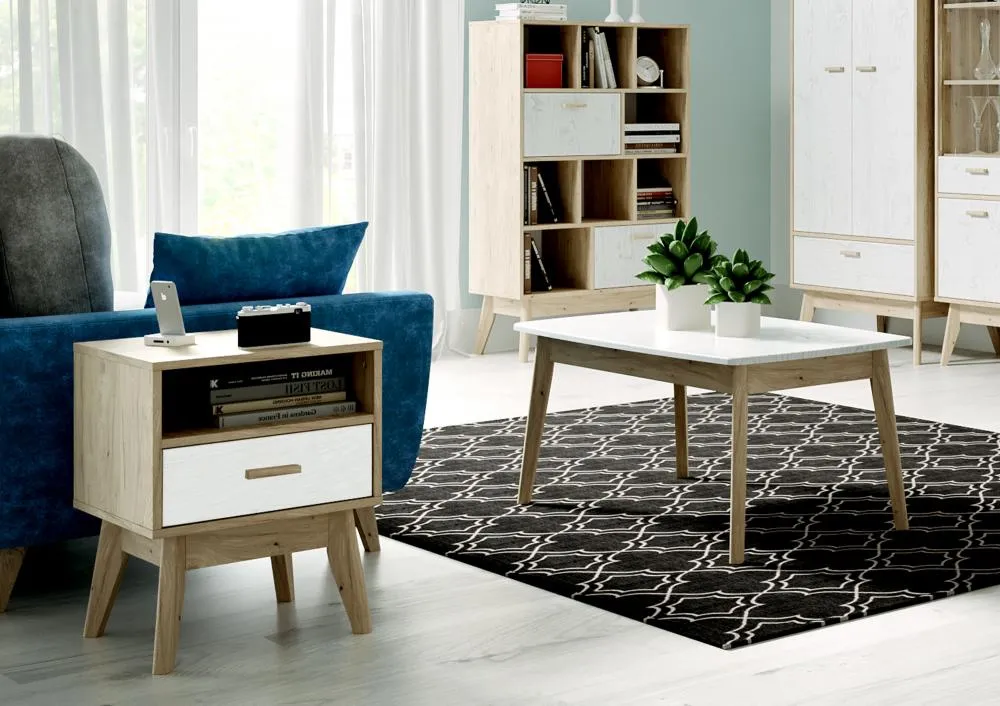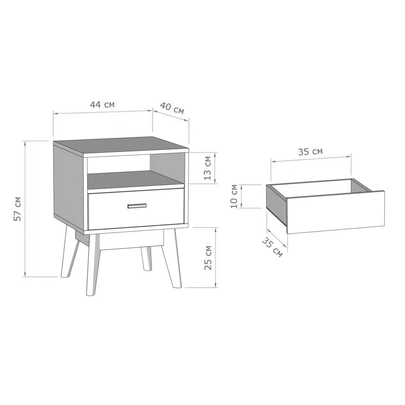 <virtues>Тумба приобреталась в комплекте со спальней Калгари. Пользоваться удобно, есть открытое и закрытое отделение. Ящик выдвигается плавно. Высокие ножки придают стиль Сканди, выглядит очень современно.</virtues> <limitations>Не обнаружены</limitations>