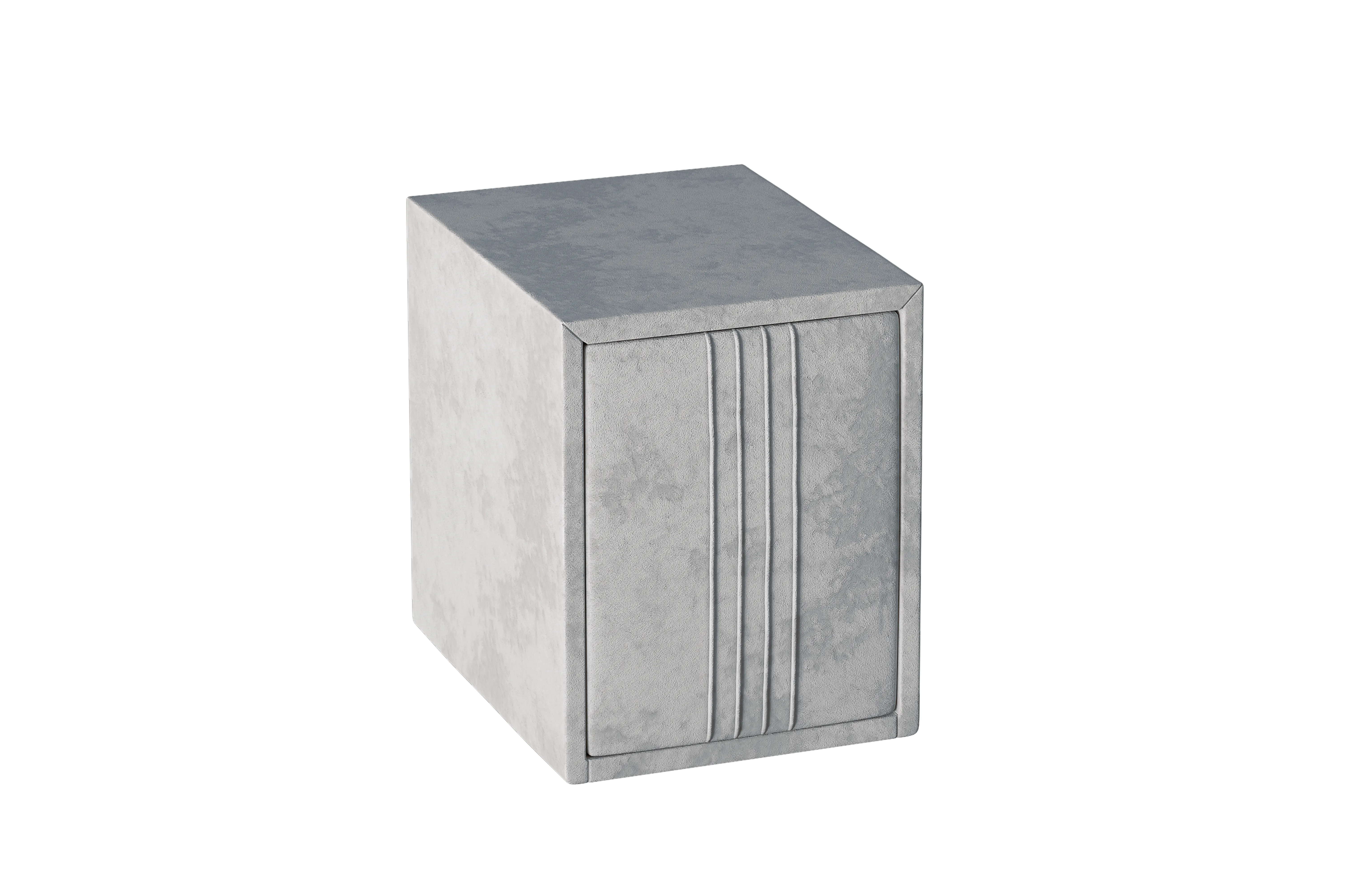 Тумба обтянута высококачественным велюром, имеет два вместительных выдвижных ящика с механизмом push to open. Скругленные торцы модели, минимизируют риск удариться в темноте.