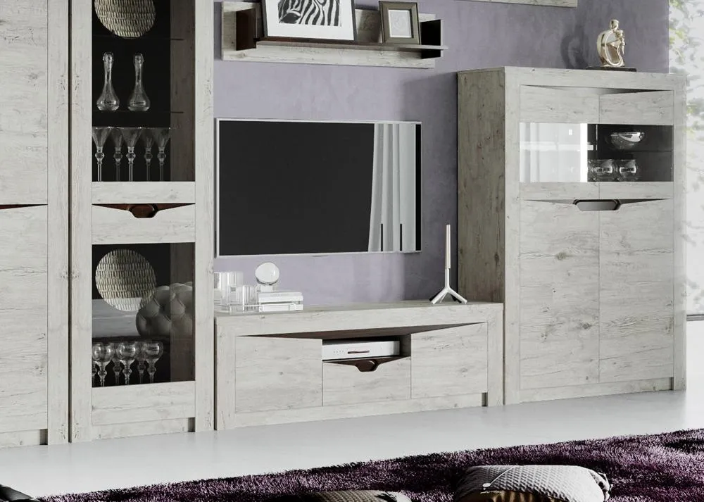 Тумба под ТВ изготовлена из качественных, безопасных материалов, что гарантирует надежность и долговечность изделия. Имеет вместительный выдвижной ящик по центру и два отделения с дверями по бокам.