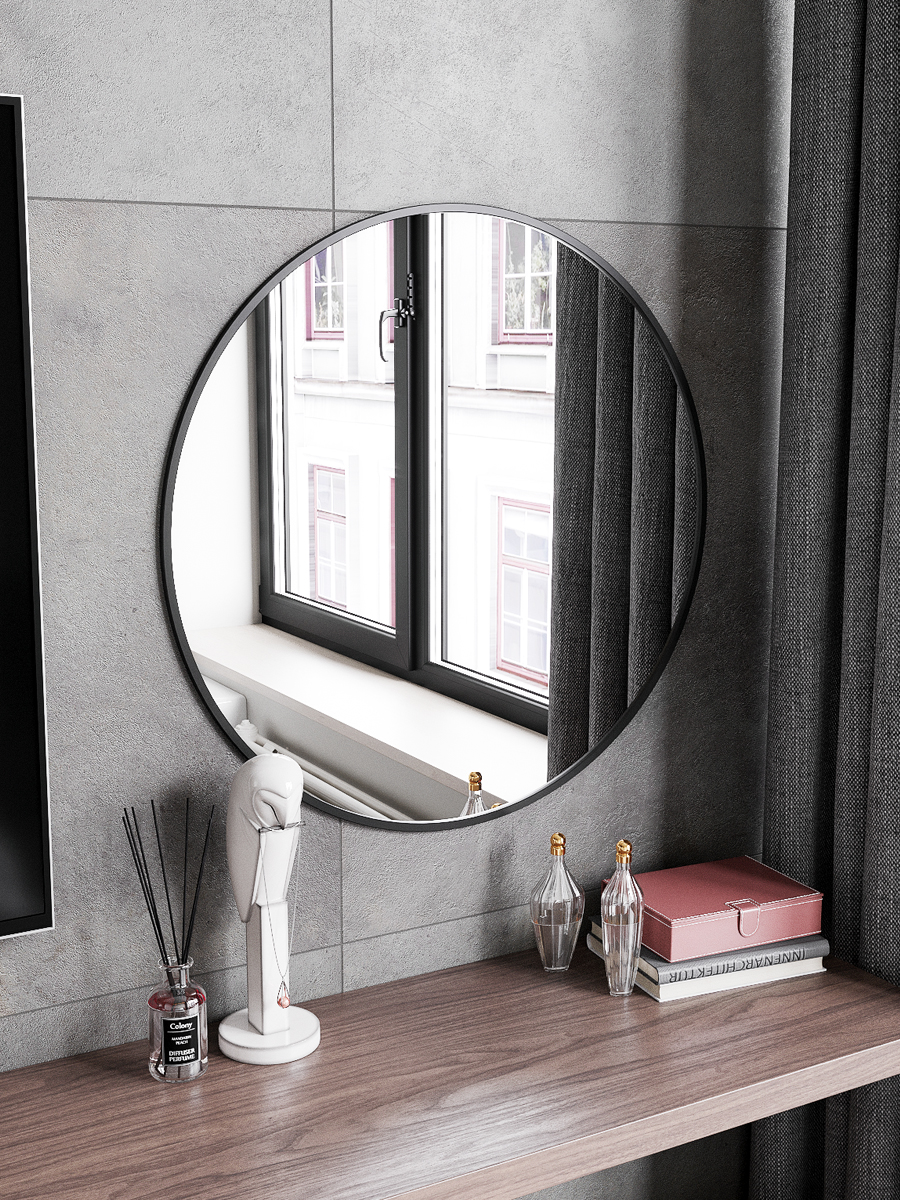 Зеркало навесное Z-15 D70 см c черной рамкой